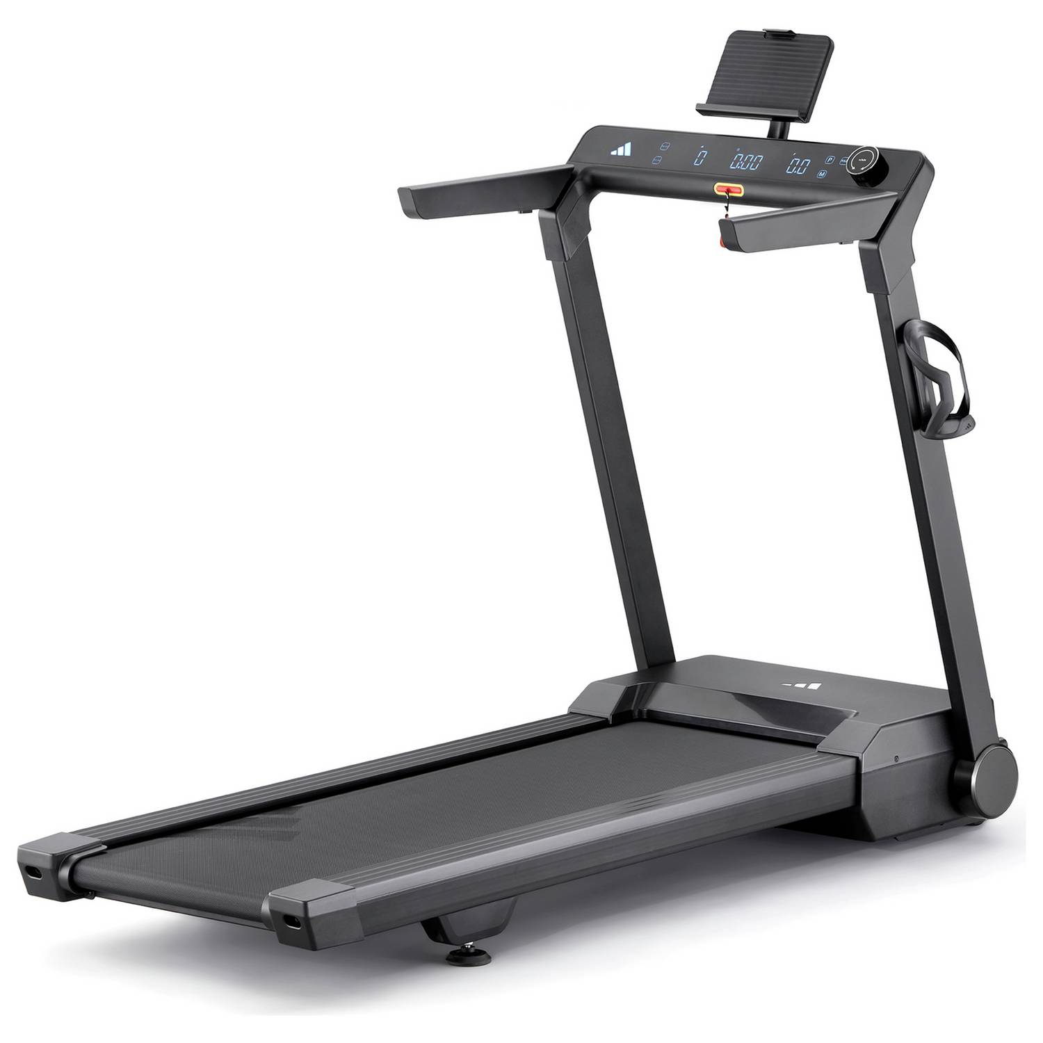 Additional features include Bluetooth connectivity, a 1.2 HP continuous motor with a 2 HP peak output, and support for users up to 110 kg (17 st 5 lb). The treadmill folds neatly for storage, is mains powered for consistent performance, and includes a running surface measuring 130 cm in length and 61.5 cm in width.